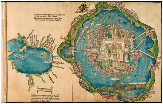 - Urroz Kanán, Raquel. 2022. México-Tenochtitlan: Modelo de ciudad renacentista. Antropología Americana 7: 125–46. [Google Scholar] [CrossRef]