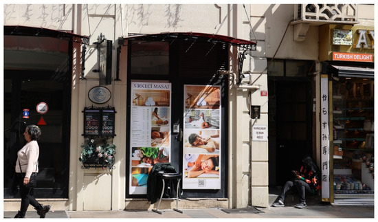 Advertisement for massage services offered at a hotel in Istanbul’s Sirkeci district in the historical city center (photo by authors).
