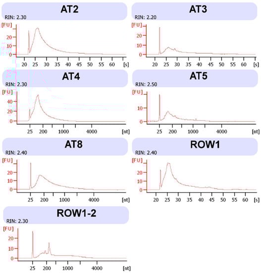 - Kalinowska, E.; Chodorska, M.; Paduch-Cichal, E.; Mroczkowska, K. An improved method for RNA isolation from plants using commercial extraction kits. Acta Biochim. Pol. 2012, 59, 391–393. [Google Scholar] [PubMed]