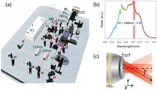 - Merino, D.; Olarte, O.E.; Cruz, J.L.; Diez, J.; Barmenkov, Y.; Andres, M.; Perez, P.; Loza-Alvarez, P. Use of A Supercontinuum Laser Source with Low Temporal Coherence for Elastic Scattering Light Sheet Microscopy. In Proceedings of the CLEO/Europe-EQEC 2015, Munich, Germany, 21–25 June 2015; OSA: Zurich, Germany, 2015; Volume CL-P.7 SUN. [Google Scholar]
