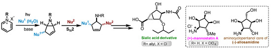 General synthetic pathway for aminocyclopentitols via photoreaction of pyridinium salts [1,2,3,4].