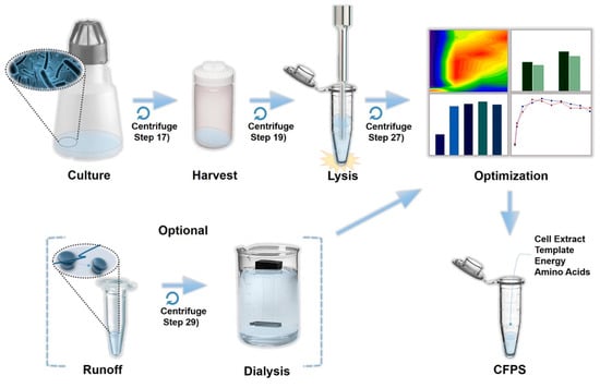 - Kwon, Y.-C.; Jewett, M.C. High-throughput preparation methods of crude extract for robust cell-free protein synthesis. Sci. Rep. 2015, 5, 8663. [Google Scholar] [CrossRef] [PubMed]