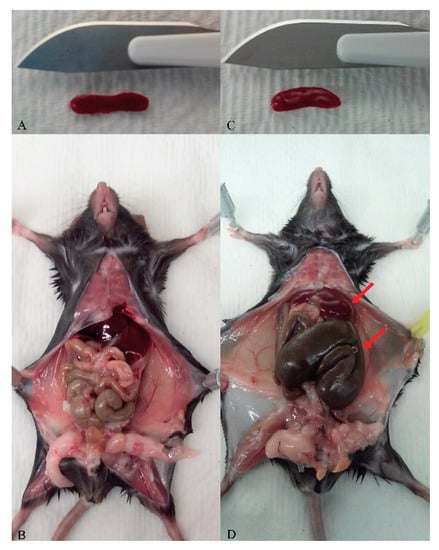The GF mouse phenotype and description have been well documented for many years and the gastrointestinal structure and function of these animals was extensively characterized by Thompson and Trexler from London in 1971 [10]. The distended cecum, weighing about ten times more than normal, is intriguing. It has been suggested that this excess weight is due to enhanced water transport. So far, the best way to return the enlarged cecum to normal has been to colonize the gastrointestinal tract with anaerobic bacteria. The absorption, linked to the speed of transit in the small intestine, is also disturbed in GF animals; Partially digested and unabsorbed peptides accumulate in the cecum. The authors also reported that other organs, such as liver, lungs, heart, and spleen were smaller [10]. The GF mice in this protocol presented a phenotype consistent with previous publications [12,13,14]. They were lean with no discernable fat, presented a five-fold enlarged cecum relative to controls and exhibited slightly smaller organs; including smaller spleens, lungs, livers, and hearts (Figure 3A–D). Additionally, they exhibited increased heat sensitivity and an increased need for food and water. We found the animals looked very healthy and were more active than conventional mice. To our knowledge, this hyperactive phenotype had not been previously reported.