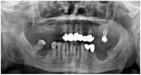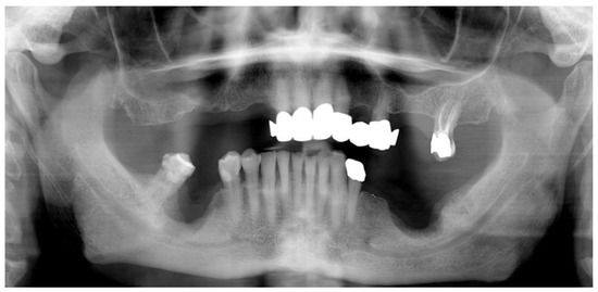 - Mauceri, R.; Panzarella, V.; Morreale, I.; Campisi, G. Medication-related osteonecrosis of the jaw in a cancer patient receiving lenvatinib. Int. J. Oral Maxillofac. Surg. 2019, 48, 1530–1532. [Google Scholar] [CrossRef] [PubMed]