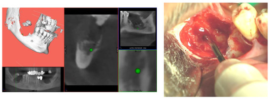 No studies on the use of dynamic navigation for the surgical treatment of MRONJ have been published yet. Several model-based ex-vivo and clinical studies demonstrate good accuracy values of the tested navigation systems, higher than those obtained with a conventional free-hand dental implant placement technique [9]. That is because of the possibility to guide every phase in real-time, from the site preparation for the implant placement, relying on both the clinical view and the CBCT images at the same time [8].