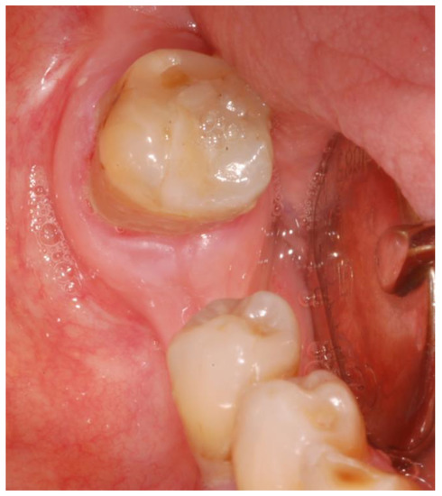 The 3-month postoperative healing of the soft tissue without bone exposure on the left side.