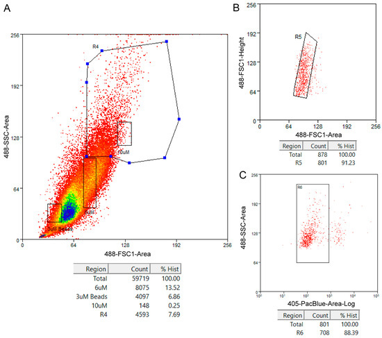 - Perform an initial sorting using 3 µm, 6 µm, and 10 µm diameter reference beads and save the file as a reference.
