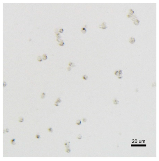B. anynana pupal wings at 24 h AP are fragile, translucent membranes with well defined trachae [26]. After cell dissocation from wing tissues using TrypLE, filtered cells stained with 0.4% trypan blue appear as a mixed population of different sized spherical cells (Figure 3). We usually get 2–4 million cells/mL upon pooling six to eight wings.