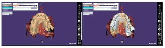 A scan abutment (a digital transfer of the abutment 3D position, taken via IOS device) was screwed on each M.U.A., and an the IOS impression (Medit i500, Seoul, South Korea) (Figure 12) was taken to prepare a provisional screw-retained prosthesis.