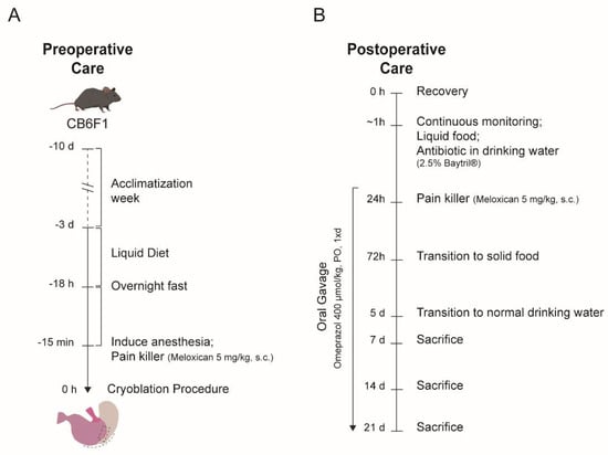 - From day 1 post-cryoablation and throughout the experiment, give daily oral gavage of anti-acid (Omeprazole, 400 µmol/kg).