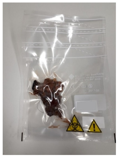 Figure 3. Example of a cervical lymphadenectomy specimen vacuum-sealed with the TissueSAFE plus device (Milestone, Sorisole, Italy).
