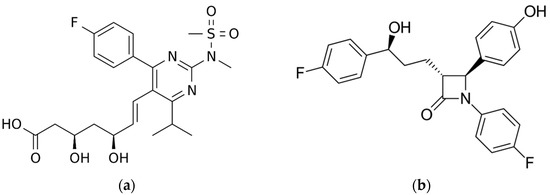 The chemical structures of (a) rosuvastatin and (b) ezetimibe.