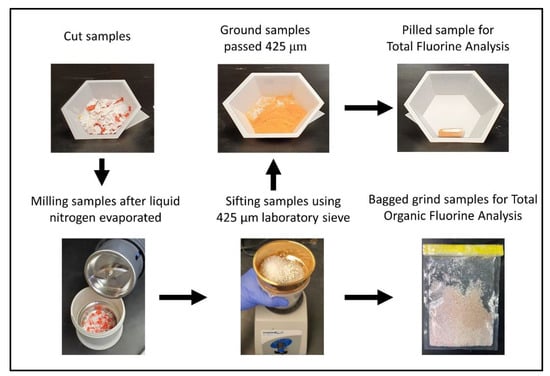 Place the milled samples that did not pass the 425 μm sieve in an ethylene oxide (ETO) sterilized polyethylene bag with the label name for total organic fluorine analysis.
