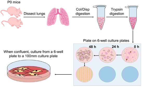 In this regard, mouse models mimicking these conditions and cell cultures derived from them are useful tools for studies on human illnesses [15]. However, we lack efficient protocols for the isolation and culture of primary fibroblast from newborn lungs, and the existing protocols developed for adult lungs are not suitable [16,17]. In addition, the use of immortalized mouse lung fibroblast cell lines in certain aspects does not represent an appropriate approach as compared with primary cultures.