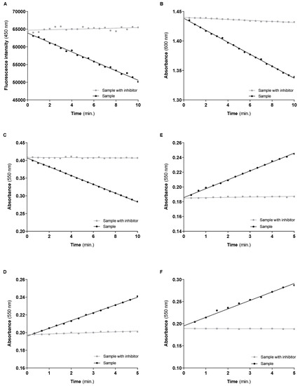Typical linear regressions of cytosolic antioxidant enzymes obtained in assays with 50 μg of protein under “blank” and “sample” conditions (Figure 13) and the calculated enzyme activity.