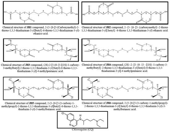 - Loachamin, K.S.; Rodríguez, H.M. Effect of six bis-THTT derivatives in the control of parasitaemia in two rodent malaria species. Bionatura 2019, 2, 1. [Google Scholar] [CrossRef]