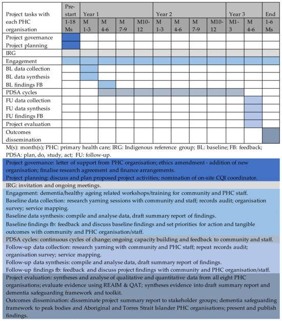 The schedule of proposed tasks and time frames for working with each partnering PHC organisation is outlined in Figure 2.
