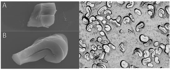 (A,B) Paraffin-embedded and SEM fibers; (C) London Resin White and light microscope fibers. These images depict the differences in the quality of the fibers from both methods.