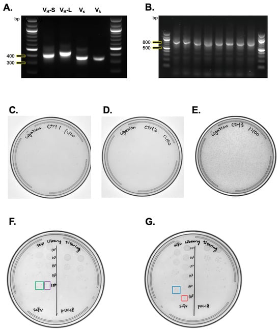 - Schladetsch, M.A.; Wiemer, A.J. Generation of Single-Chain Variable Fragment (scFv) Libraries for Use in Phage Display. Curr. Protoc. 2021, 1, e182. [Google Scholar] [CrossRef]