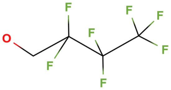 Fragment 2,2,3,3,4,4,4-heptafluoro-1-buthoxy- derived from the EI ionization of the glyphosate derivative in Figure 5.