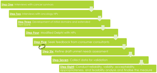This project takes a mixed-methods design informed by the approaches taken to develop established oncology unmet needs assessment tools (e.g., [30]). However, this measurement development project incorporates additional steps and approaches, as well as a greater emphasis on co-design, involving cancer survivors and oncology health professionals. Qualitative methods used include interviews and open-text responses, while quantitative methods involve the use of surveys incorporating validated measures. This is important to ensure the needs assessment is sensitive, comprehensive, relevant, and practical to the cancer survivor, and the health professional.