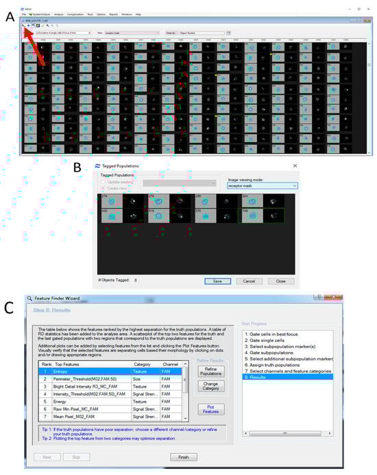 When analyzing specific events of interest, these events can be separated into distinct subpopulations for further study (Figure 6). Instead of manually sorting cells, an automated approach can be used to divide cells into subpopulations. For example, the Feature Finder Wizard algorithm can be applied. This tool requires the selection of fluorescence channels and the identification of the populations to be analyzed. The algorithm then generates a list of morphological parameters that show the most significant differences between the selected populations.
