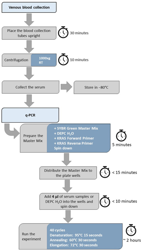 Because NETs consist of genomic DNA, in theory, any gene can be used to measure the released NET amount from the serum or plasma. In this study, we selected the KRAS gene as it has been used frequently for circulating cfDNA research [18,42,43].
