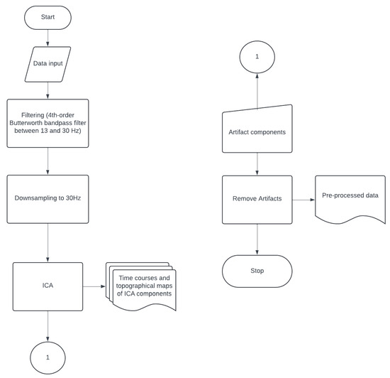 These components will be identified through the visual inspection of both their temporal dynamics and topographic maps, guided by established criteria from the previous literature on artifact detection using ICA [