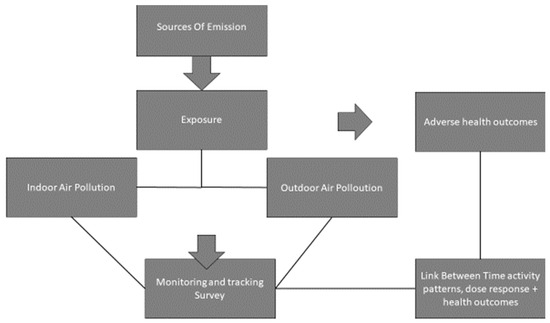 The identification and assessment of these dimensions lead to responsive actions among relevant stakeholders. A conceptual framework (Figure 2) was developed to demonstrate the connections between children’s exposure to air pollution and the monitoring of specific pollutants. It defines the study’s objectives and the key factors, concepts, and variables involved. Supporting evidence from the literature review indicates that air pollution poses a health threat or risk. The framework is presented diagrammatically to depict the presumed relationship between air pollutants and childhood respiratory diseases. Therefore, the results of this study will enhance the body of knowledge in public health and guide policymakers and implementers. The research will evaluate, refine, and validate new scientific findings in public health. A model will be developed to assist environmental health practitioners at the operational level in implementing preventive measures to address the impact of ambient air pollution on asthma. This will contribute to improving the quality of life for the population and in other similar community settings.