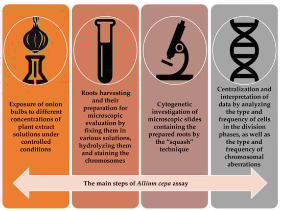 The experimental conditions of the Allium test can vary. Usually, different concentrations/dilutions of the studied extracts are tested, and exposure can occur at different times.