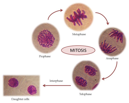 Plant-based monitoring systems rely on microscopic observations of aberrations occurring during mitosis and the subsequent effects on chromosomes. Therefore, plants such as Allium cepa, Allium sativum, Lactuca sativa, Sinapis alba, Triticum aestivum, Vicia faba, Zea mays, etc., possess excellent characteristics for monitoring and screening the cytotoxicity of different agents [,,,,,,]. The advantages of the plant-based toxicity system are numerous: the ease of obtaining the material, its storage and handling, simplicity and rapidity of implementation, high sensitivity and reproducibility [,,,,].