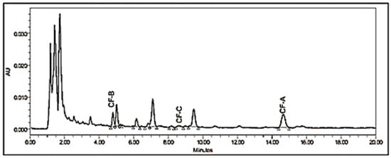 While MS-based methods offer greater sensitivity, not every analytical laboratory has access to mass spectrometry equipment [44]. Our HPLC-PDA method offers a practical and consistent approach for routine analysis, and the absence of CF-B and CF-C in certain plant parts probably indicates their low abundance compared to the method’s detection limits.