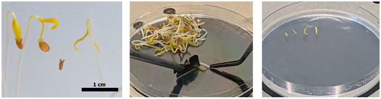CRITICAL STEP The seeds should germinate in absolute darkness. The cotyledons should be about 1 cm long, still etiolated, and the first true leaves not yet developed (see also [19,20]). See Figure 3 and Figure A2.
