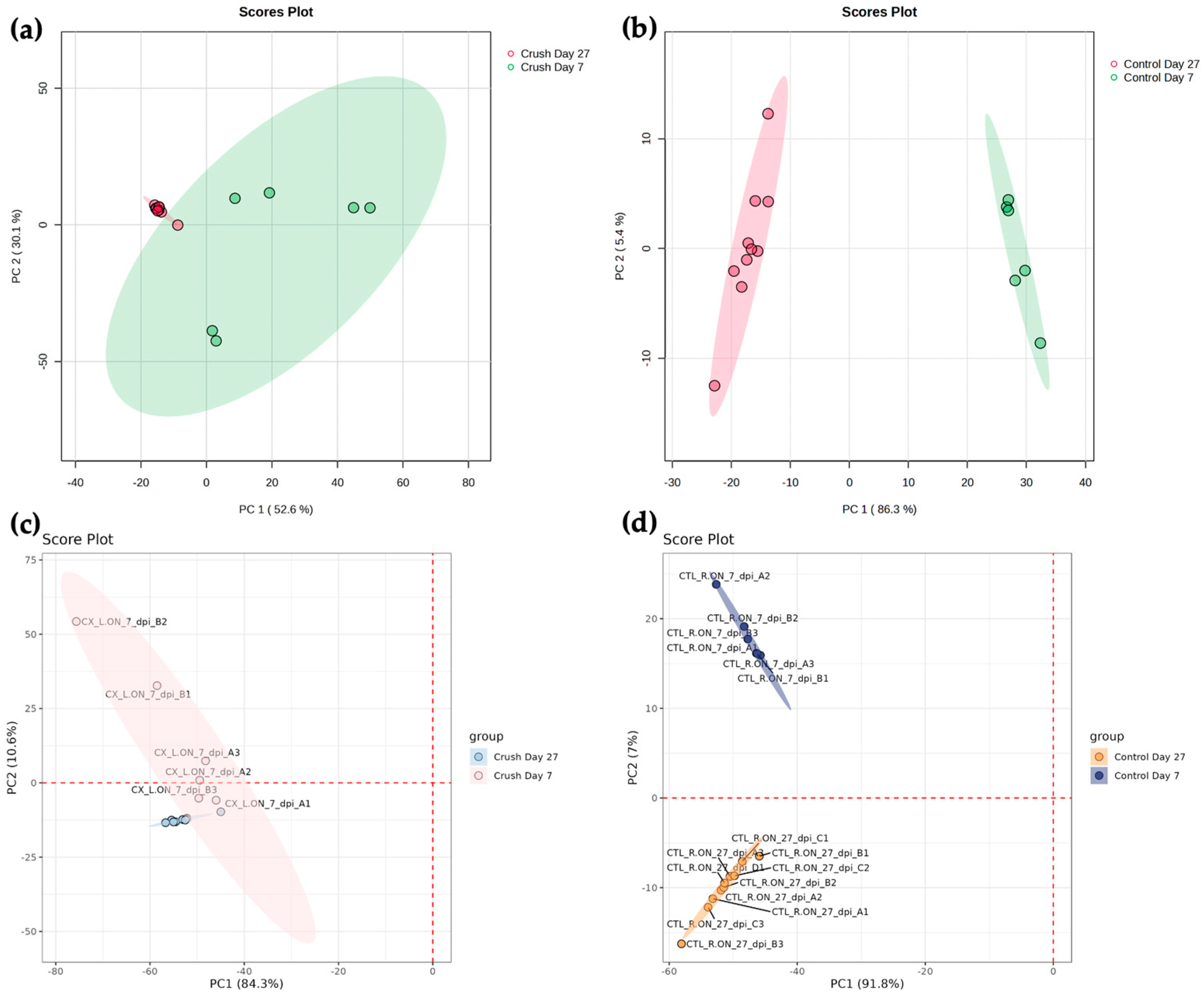 Multivariate statistics | PCA, PLS-DA, sPLS-DA, orthoPLS-DA | PCA, PLS-DA, sPLS-DA, orthoPLS-DA, ROC analysis |