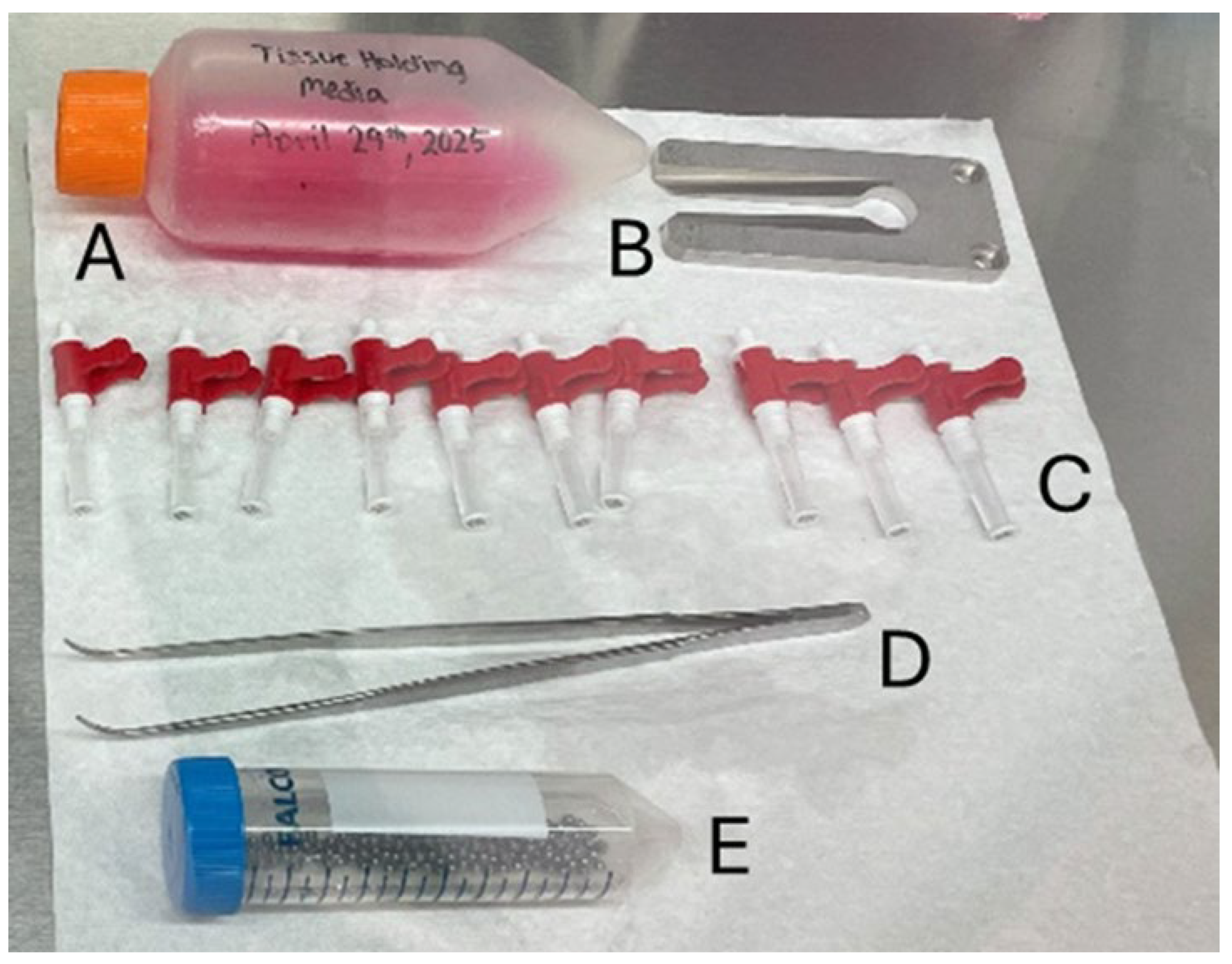 - CRITICAL STEP: All steps within this area of preparation should be conducted using sterile technique in a biosafety cabinet. Refer to Figure 1 for examples of the parts.
