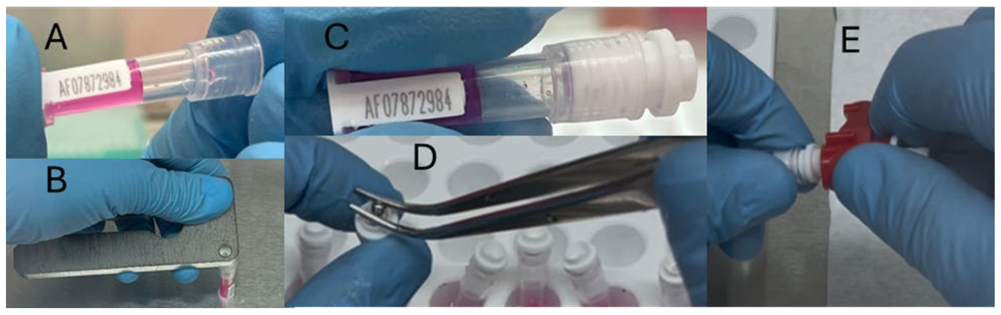 - Seal the tissue collector with the connector (Figure 4B–D).