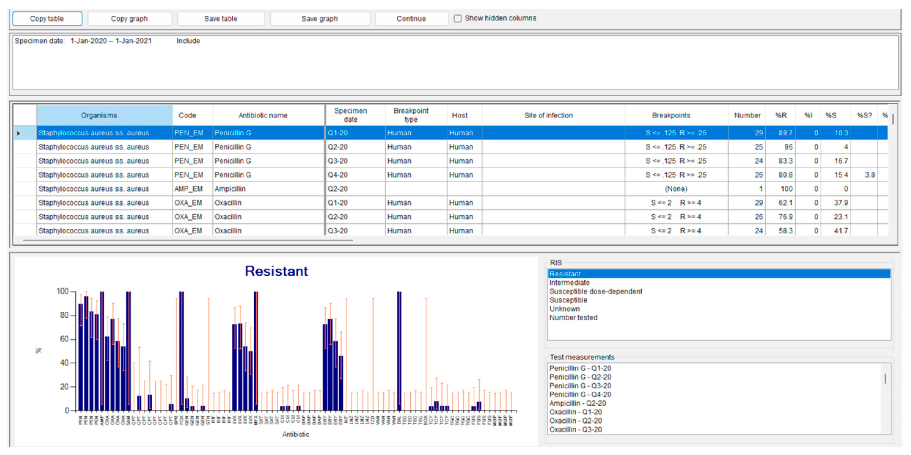 - O’Brien, T.F.; Stelling, J.M. WHONET: Removing obstacles to the full use of information about antimicrobial resistance. Diagn. Microbiol. Infect. Dis. 1996, 25, 162–168. [Google Scholar] [CrossRef] [PubMed]