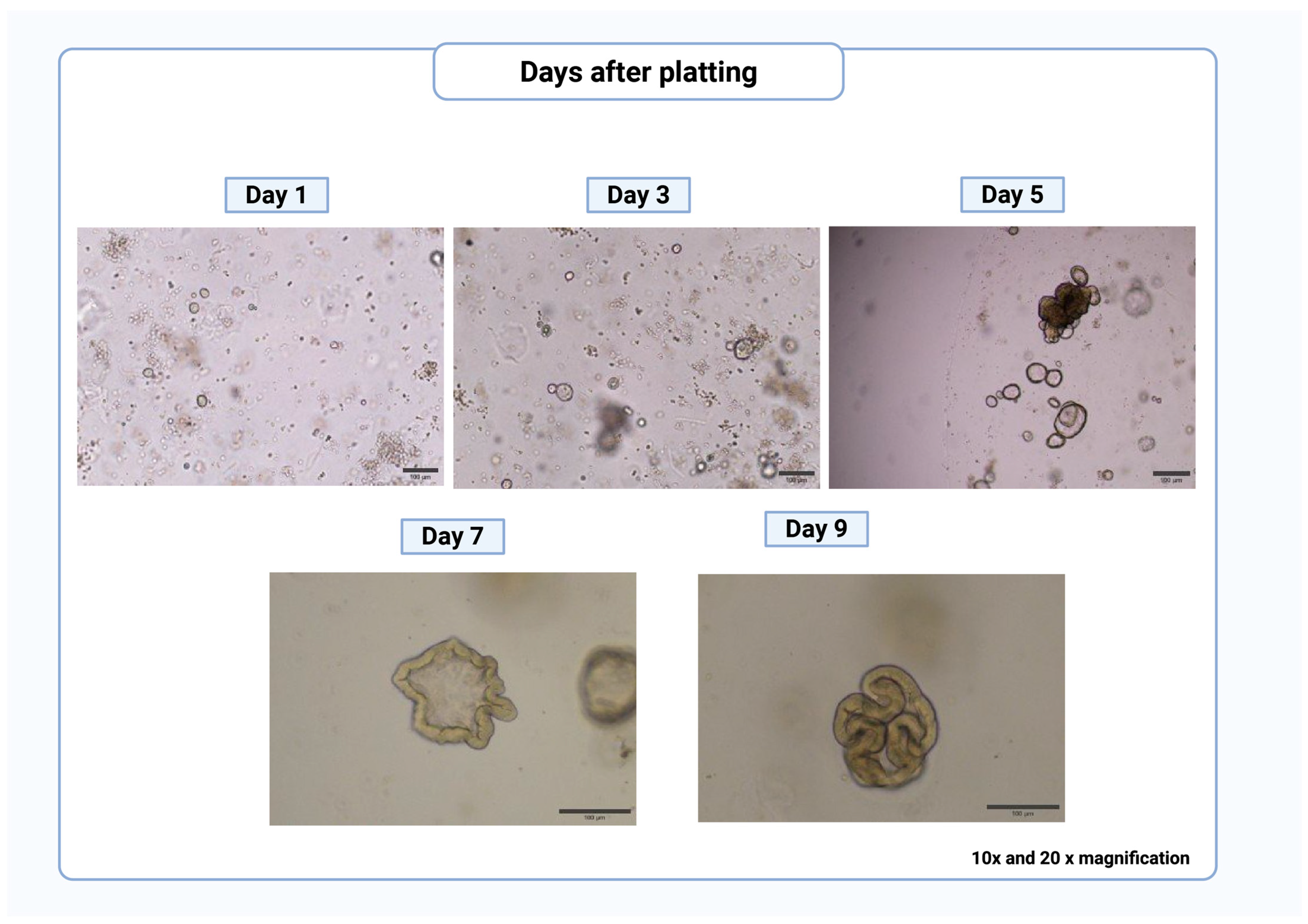 - Passage every ~7 days or as needed based on the growth of organoids (Figure 3).