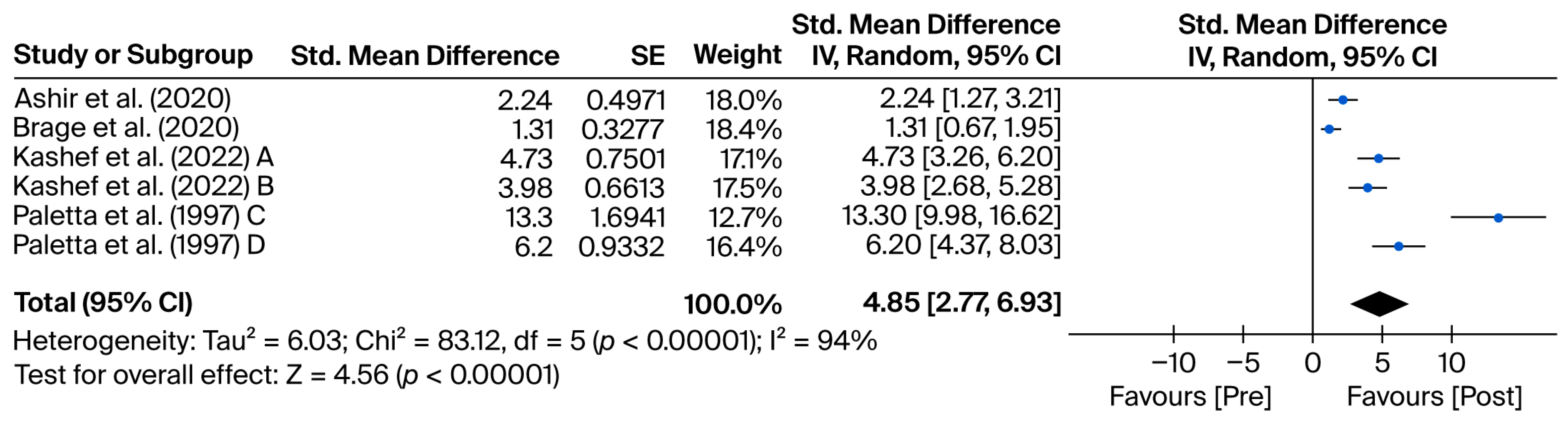 | Reference [14] | Switzerland | Observational study | n = 65 (34 experimental, 31 control) | No specific comparative intervention | 3–12 months | ASES, SST | Increase in SST; no significant changes in ASES. |