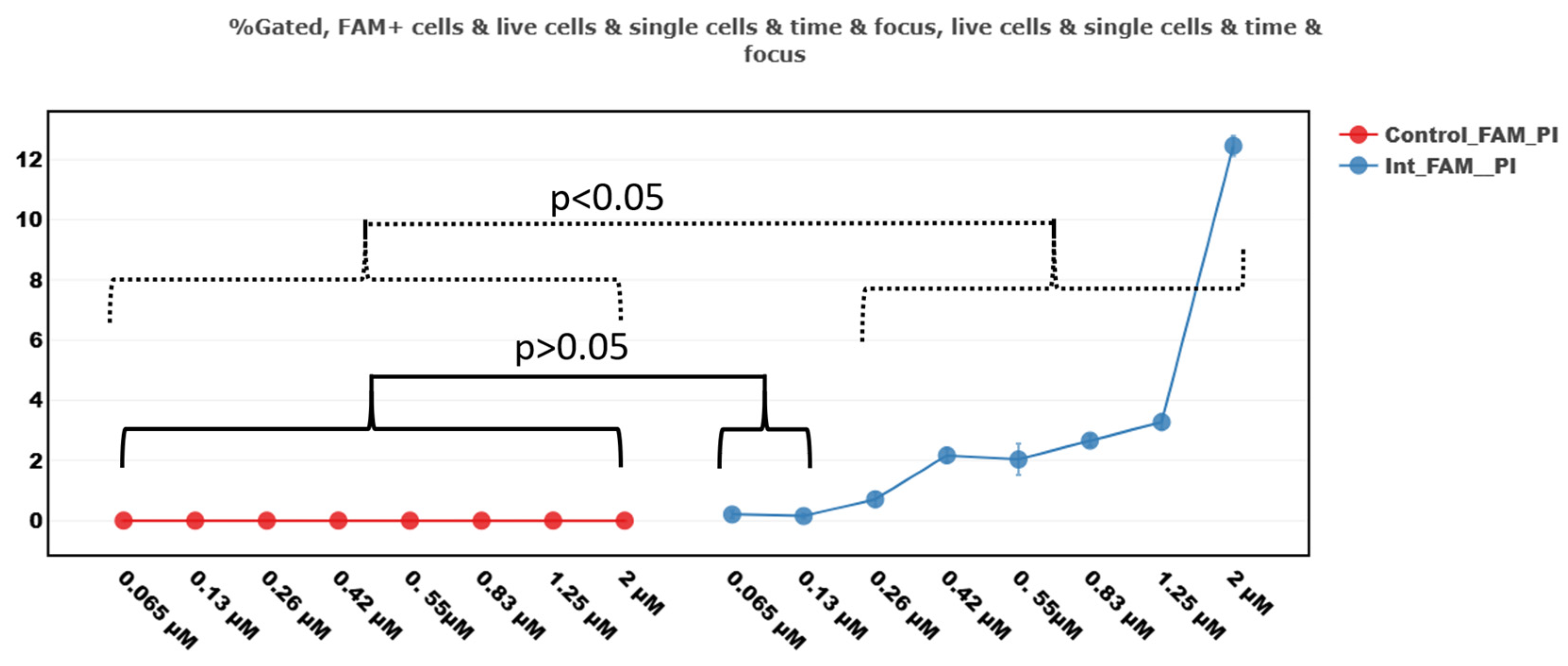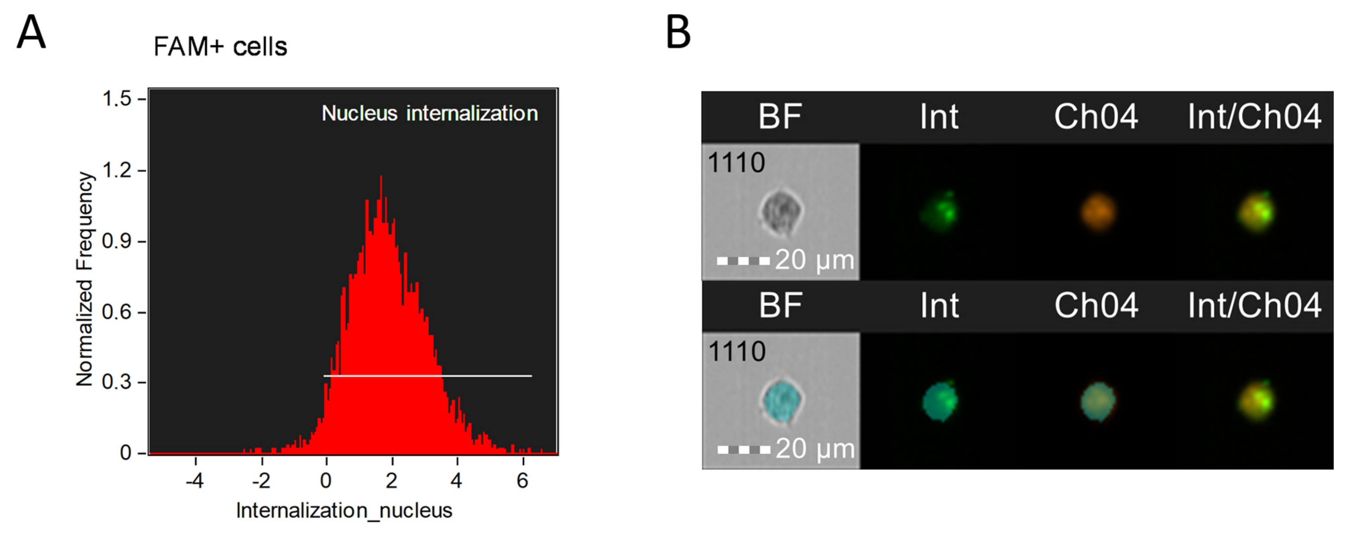 - Gating of the population of cells that have internalized the chemical compound versus the non-internalized population.