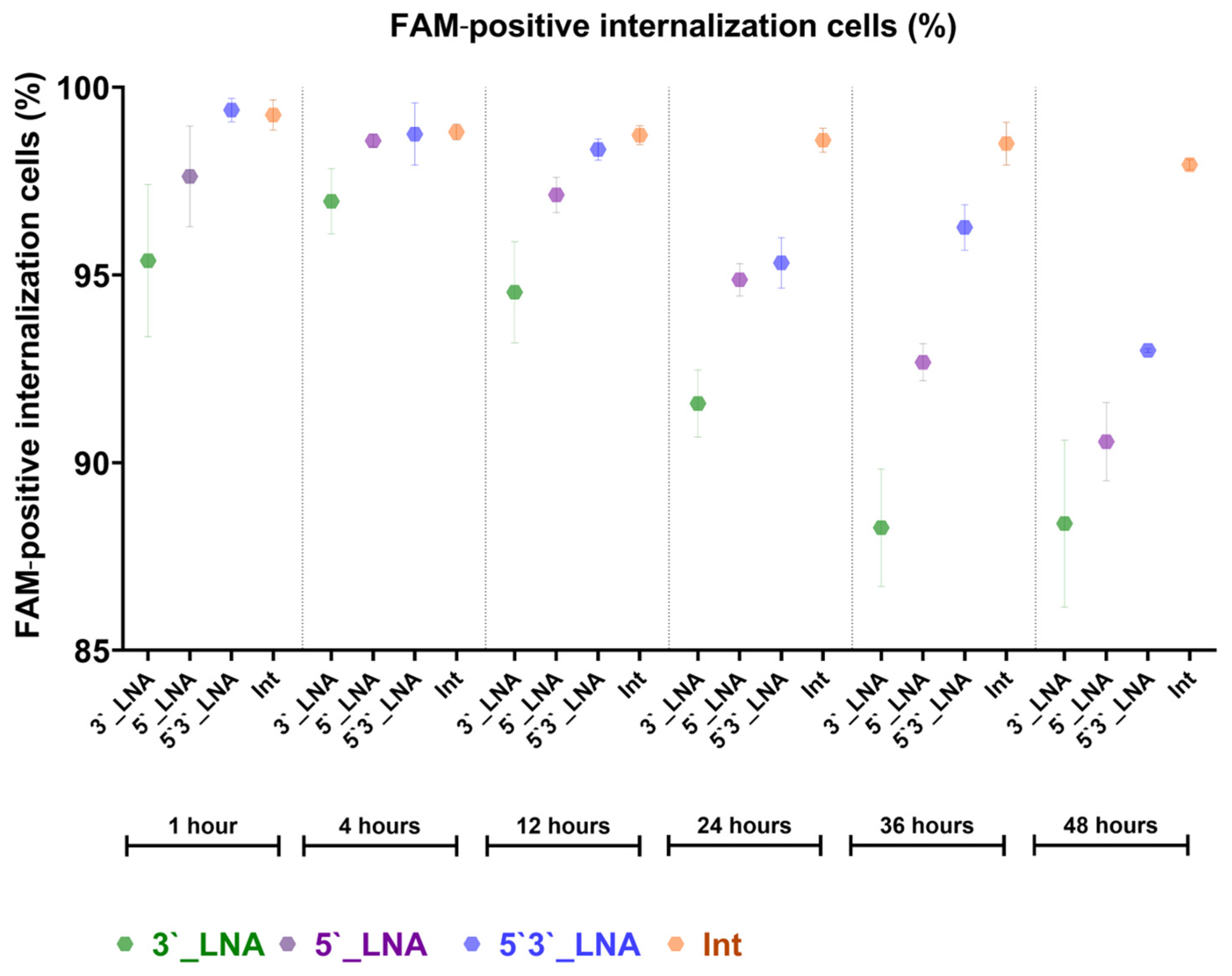 | FAM-Int III_5′/3′-LNA | [FAM]-LCLTLTLGLACSTSTSTSGSGSGSGSASTSTSGLTLALGLGLG |