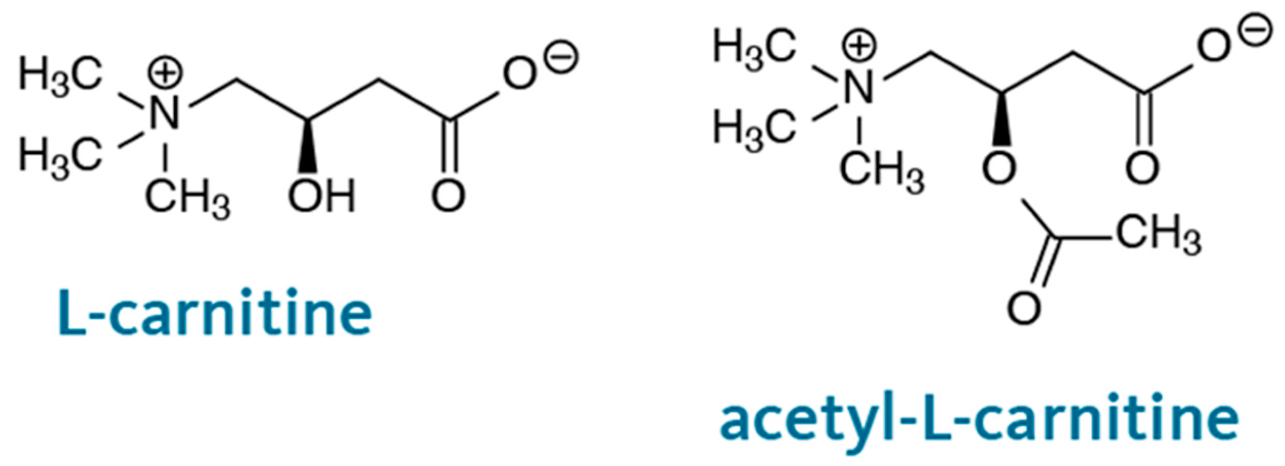 - Alhasaniah, A.H. L-Carnitine: Nutrition, Pathology, and Health Benefits. Saudi J. Biol. Sci. 2023, 30, 103555. [Google Scholar] [CrossRef] [PubMed]