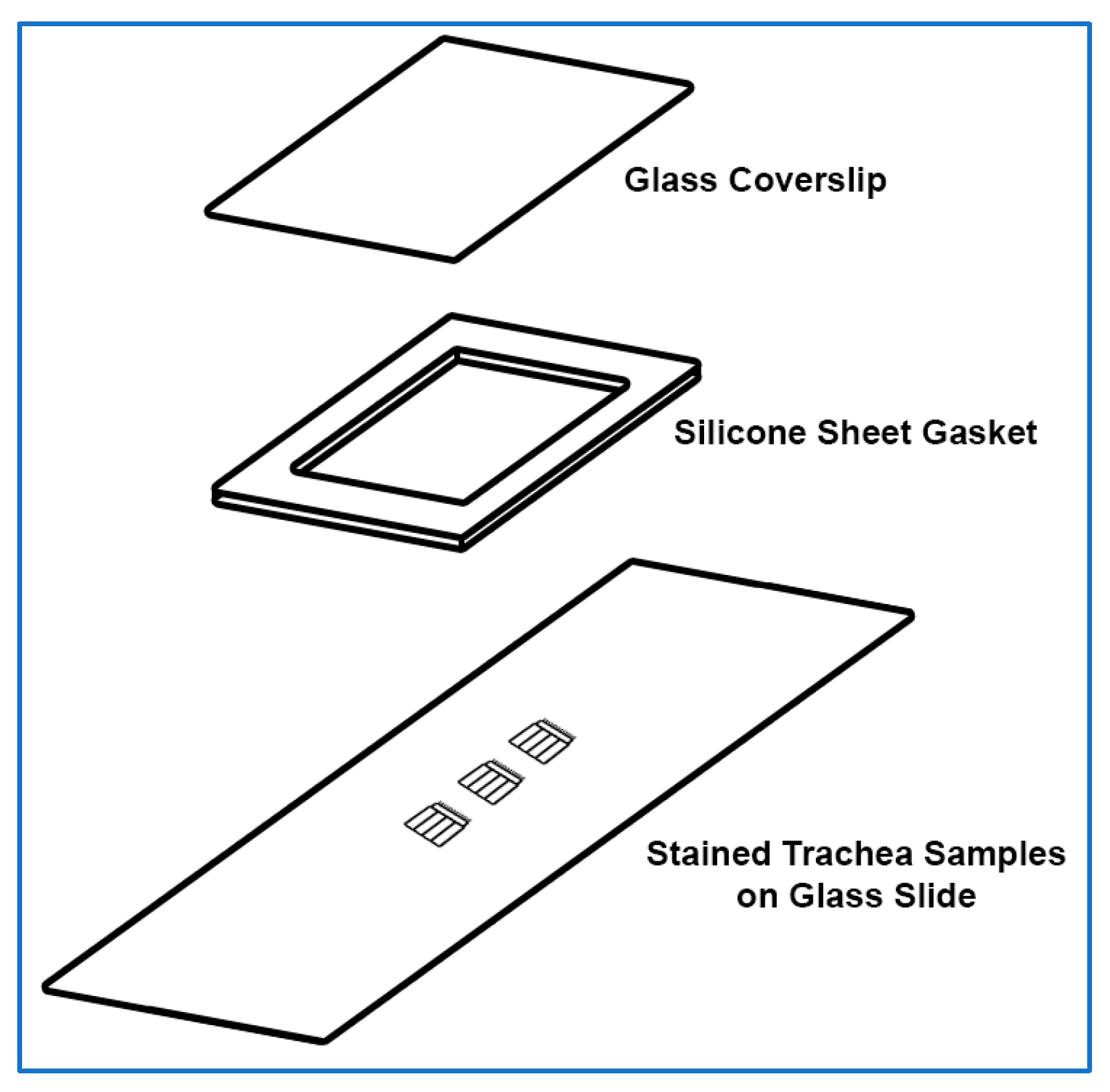 - Gently lower the silicone-covered coverslip onto the glass slide and trachea samples/mountant, then gently press into place. Care should be taken so that the silicone layer is the middle layer between the coverslip and the glass slide.