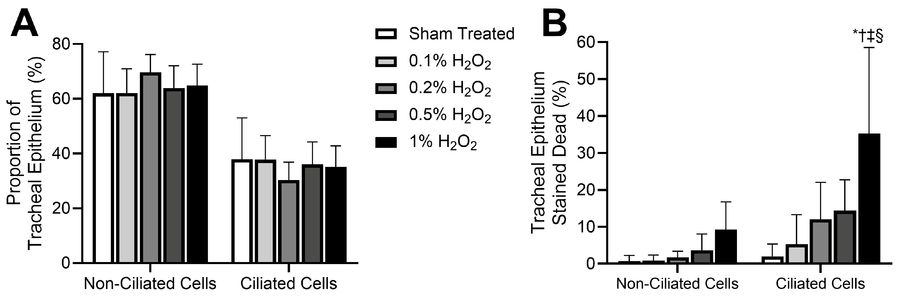 - Francis, R. The effects of acute hydrogen peroxide exposure on respiratory cilia motility and viability. PeerJ 2023, 11, e14899. [Google Scholar] [CrossRef]
