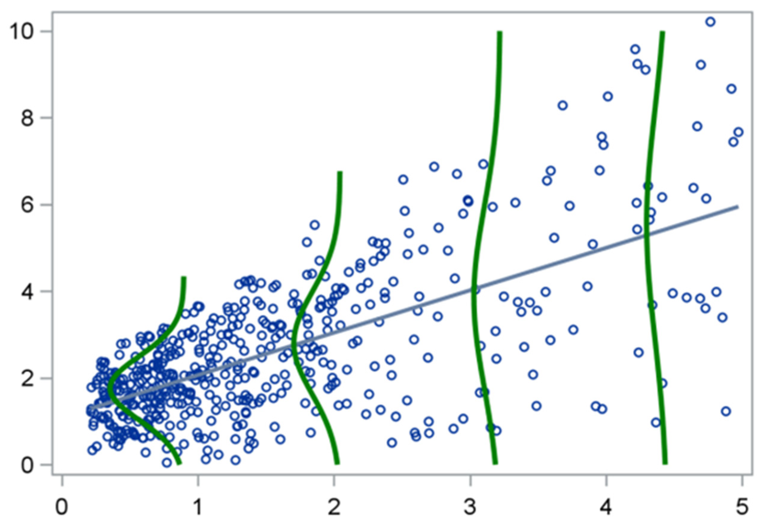 14]. This property makes quantile regression particularly valuable for epidemiological and clinical data, where skewness, outliers, and heteroscedasticity are the rule rather than the exception [