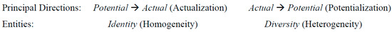 In the General Theory of Information [2] information is characterized by a system of principles and the General Transformation Principle 2, describes the essence of information in a broad sense as the potential (capacity) of things, both material and abstract, to cause changes (transform) other things. When this capacity (potential) is actualized, it becomes a nature or technology operator (cf. Definitions 7 and 8), which acts on different systems. Thus, it is reasonable to distinguish potentialized and actualized components of information, whose evolution follows the pattern of Logic in Reality, as discussed in Section 3.3.