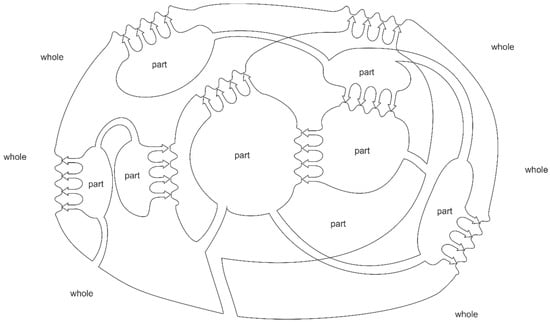 The situation presented in Figure 2 could be treated as the well-known schema of interaction between the separated system and its environment, which is the canonical situation in the system theory. The main conceptual achievement of the General System Theory (GST) by Bertalanffy and others is the representation of the world as separated but interconnected entities. Skyttner, who collects the efforts of many researchers, presents a list of hallmarks of the theory of systems. Among them, on one hand, there is holism, on the other differentiation and even the hierarchy of related and interdependent objects and their attributes [] (p. 53). Other attributes mentioned by him are goal seeking, the transformation process, inputs and outputs presence, entropy, regulation, equifinality, and multifinality.