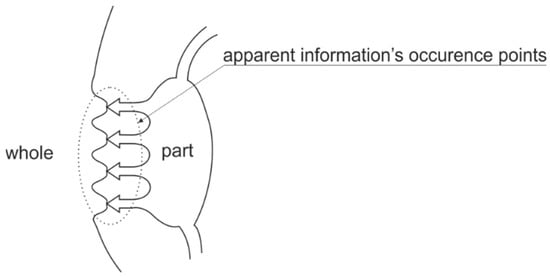 Information perceived from the perspective of the whole world according to the scheme shown in Figure 5 appears to be an interface, a gate, a synapse that is created to allow the flow of knowledge. From the point of view of the whole, the information enables synchronization of all processes of flowing knowledge that are constantly developing and complicating, thus maintaining the circulation of it in the world. In this sense, information can be seen in each of the places in which it reveals itself as a kind of interaction, and from the perspective of the world as a certain interacting whole. This is basically the Hofkirchner stance, which analyzes the ways the information occurs in detail [] with the proviso that the information is only the tool for realizing the knowledge system, which should be considered as a whole. Because information reveals itself indirectly and as an impact, the subject of impact determines its phenomenal shape. If such a way of the existence of information is assumed, it would be a functional whole that is structured internally, develops in time, and is the source of numerous interactions.