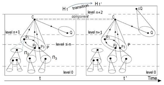 A multi-level system, such as a living system, can be modeled by a compositional hierarchy (in the sense of Salthe [5], that is a system, in which the components are distributed in different complexity levels (from 0 to m), with the following property: a component C of a higher complexity level is a composed object acting as a ‘whole’ aggregating a pattern of interacting components of lower levels.