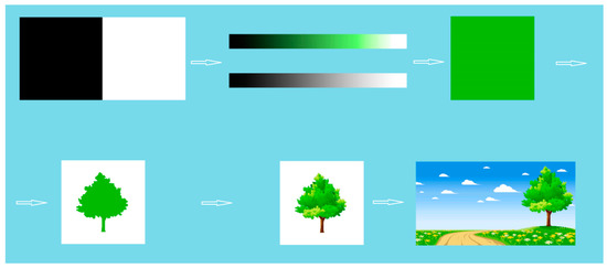 What we see in Figure 4 is that the base of the visual domain is represented by the black-and-white qualia. Then the qualities of black-and-white are inherited in the emergent level of shades-of-gray. We can see this inheritance by the fact that shades-of-gray display a darker-and-lighter variability. Then the qualities of the shades-of-gray are inherited in the emergent level of colors. We can see this in the fact that a color is never pure, but displays a range of shades varying from lighter shades to darker shades. Then, colors are inherited in the emergent level of shapes. A shape is not an abstract entity but it is always created from at least 2 colors. Then shapes, like we also saw in the previous Figure 3, are inherited in objects, in this particular case in the quale of tree. Finally, objects are inherited in the full visual scene. Notice as a side note that emergence is not linear, but from a certain level there can be a whole family of branches emerging. For example, from shades-of-gray all colors can emerge (even colors that we cannot imagine from our human consciousness), not only one. Also, from the shape in Figure 4, a quale of tree can be emerged or a quale of leaf, and so on. In principle, the number of qualities that can be obtained through emergence is infinite.